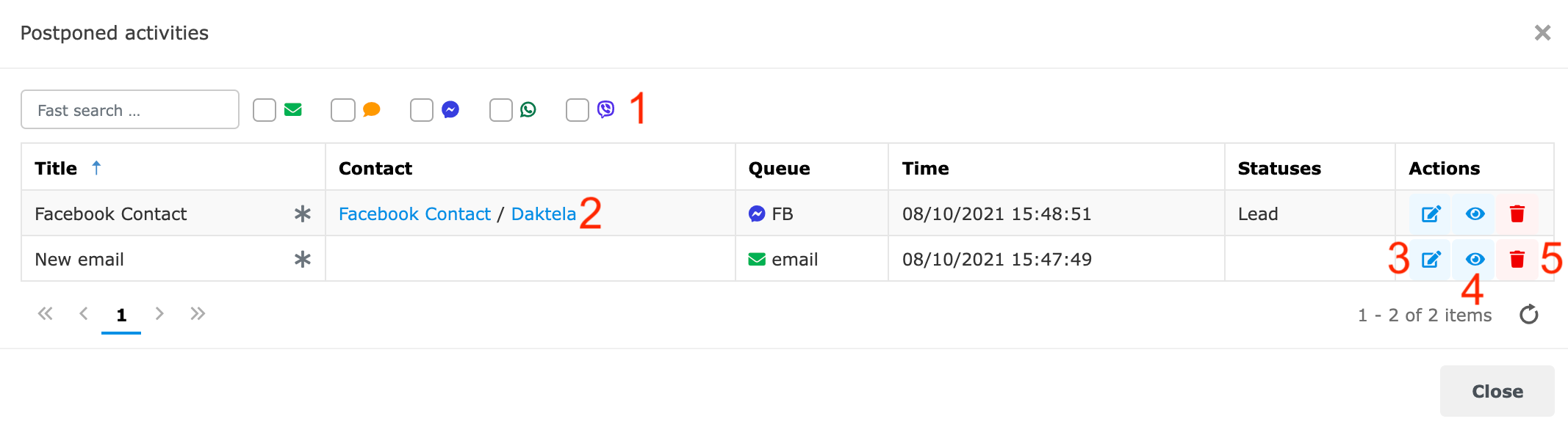 Chcete-li zobrazit všechny odložené aktivity, klikněte na tlačítko Odloženo.