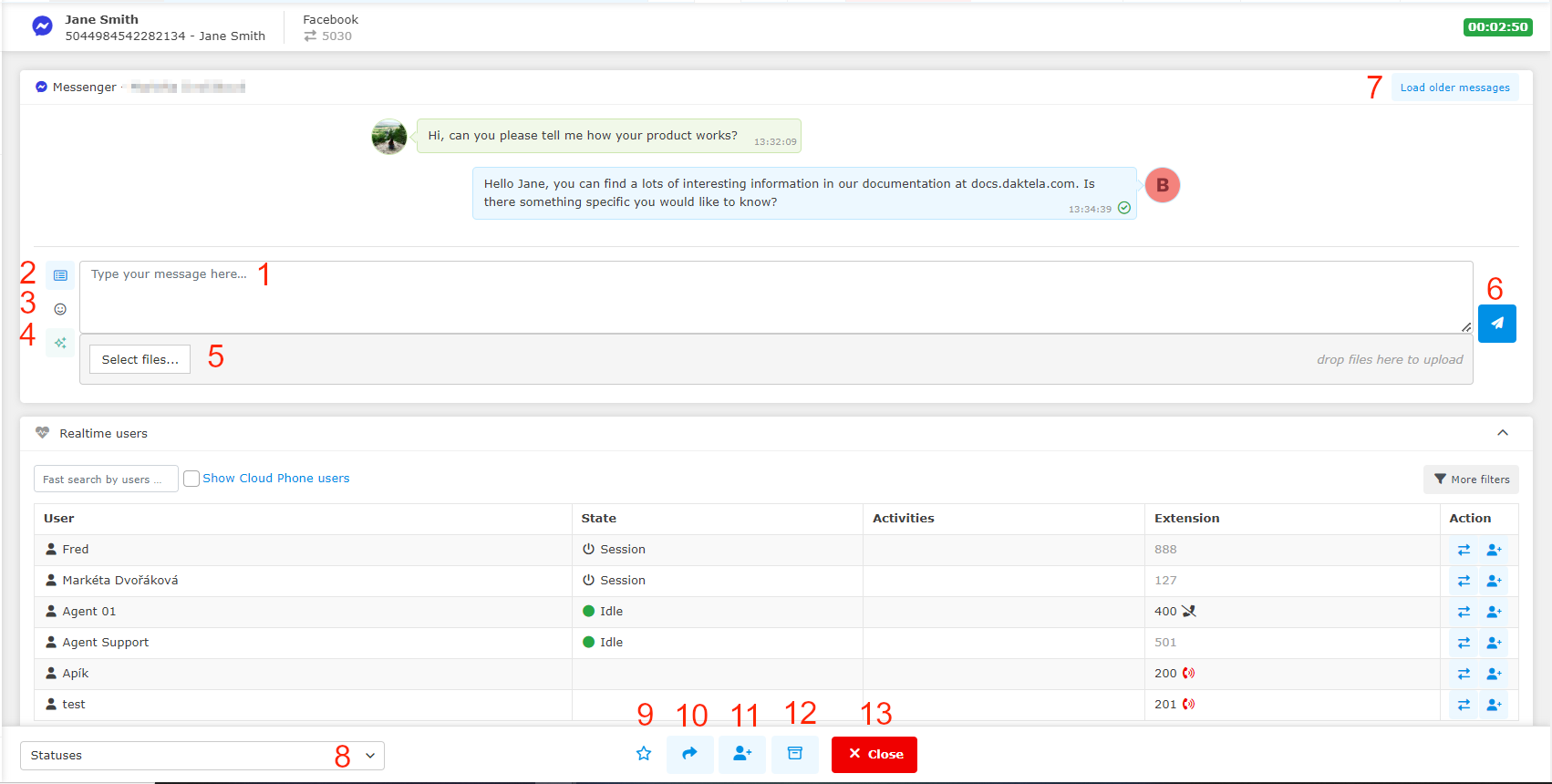 Se zákazníkem nyní budete chatovat vy i operátor, kterého jste přizvali. Chcete-li přizvat více účastníku, celý proces zopakujte.