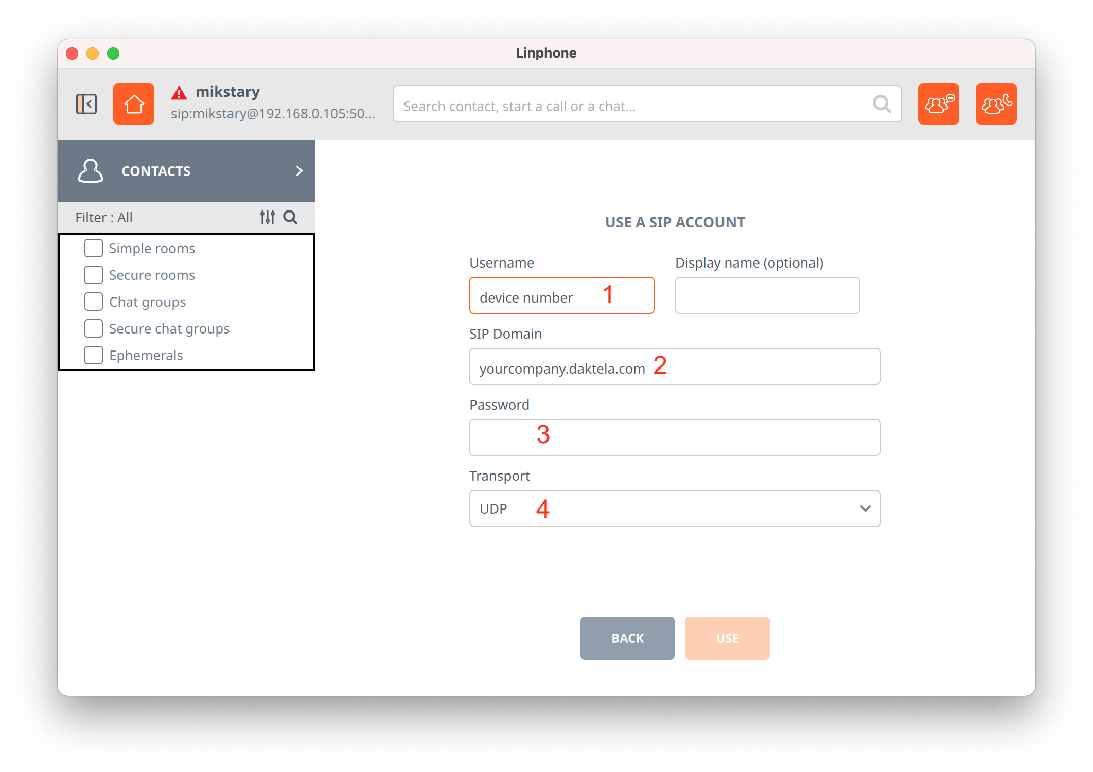 Try the Daktela Software Phone – designed to work specifically with Daktela, it is much easier to set up.