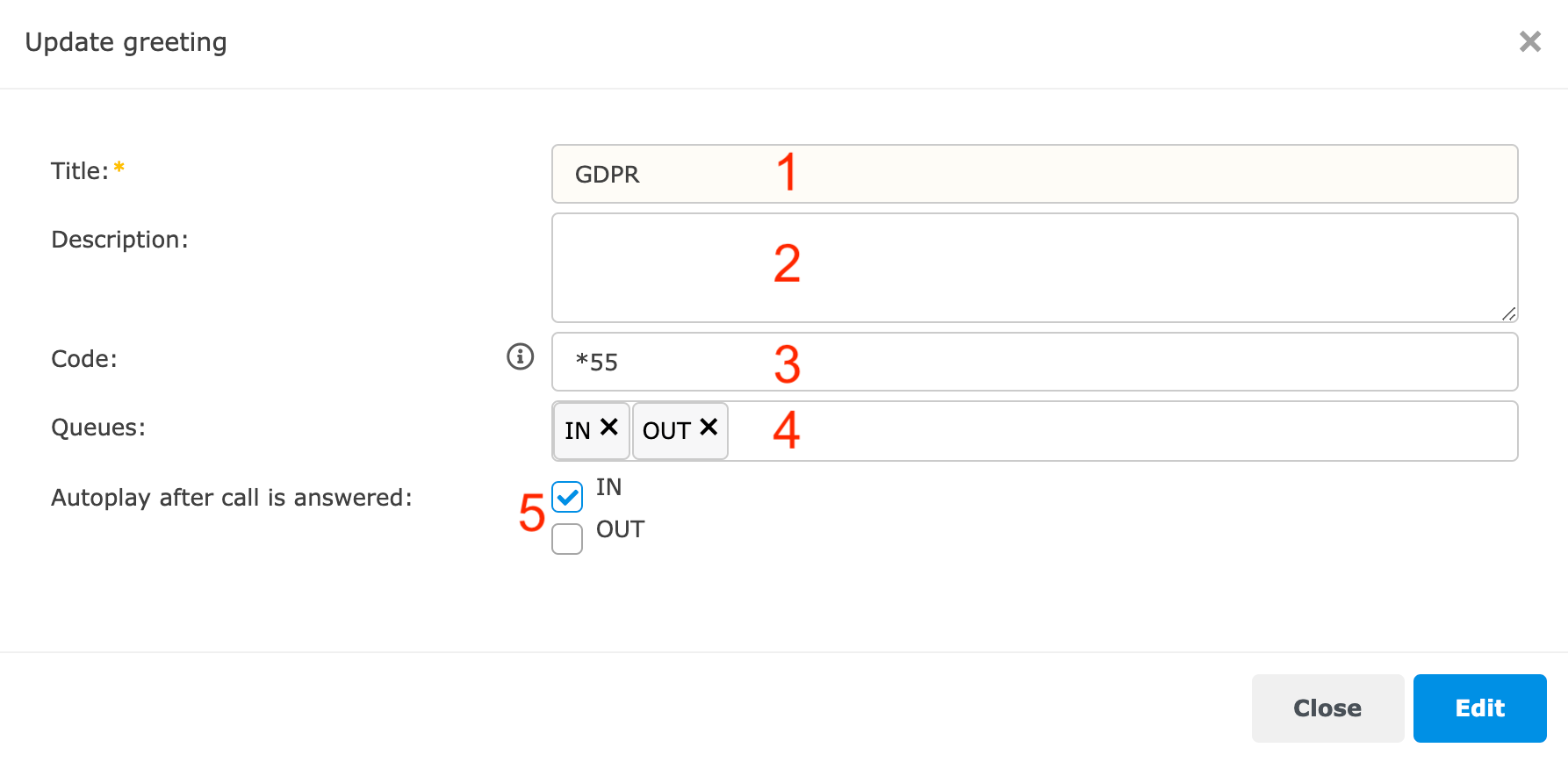 Zaškrtněte fronty, u kterých se má přivítání automaticky přehrát poté, co přijmete hovor.