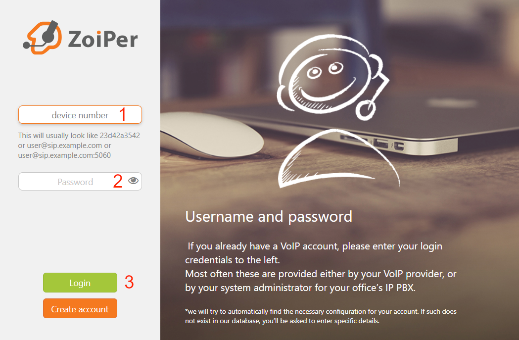Download the Softphone from www.zoiper.com and install it to your device then follow the guide below to set it up.