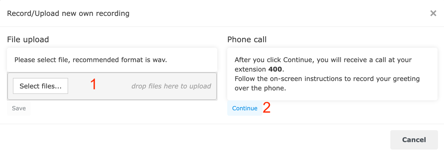 Record your greeting over the phone. Click Continue and follow the on-screen instructions. You must be logged in and ready to record your greeting over the phone.