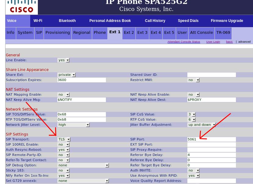 choose TLS at item SIP Transport and write 5061 to item SIP port