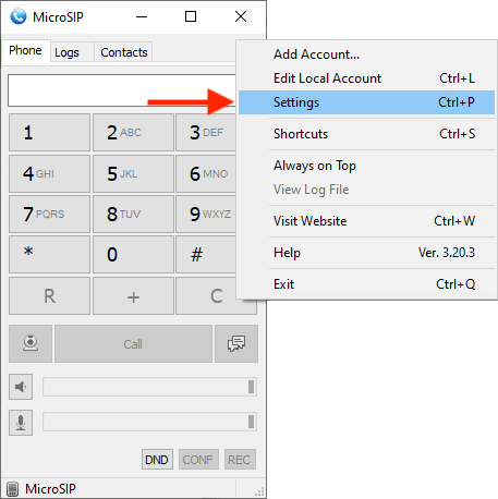 MicroSIP is now set up for use. You will see you are online in the bottom left corner and your device number in the bottom right.