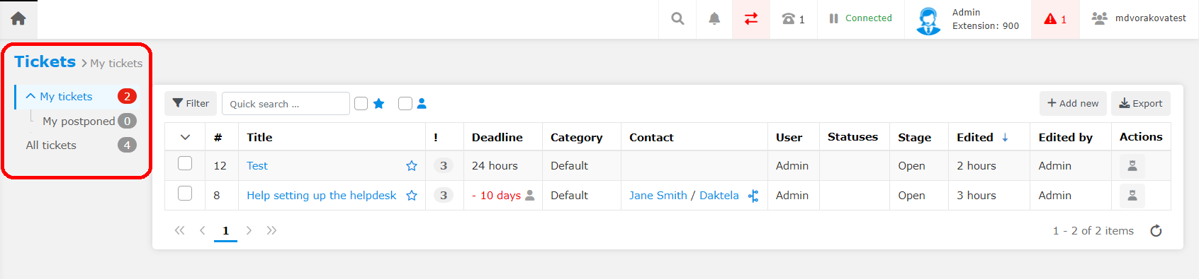A ticket is an overview of activities connected in one thread. The ticket can include email, calls, SMS, or any other available activity.